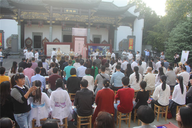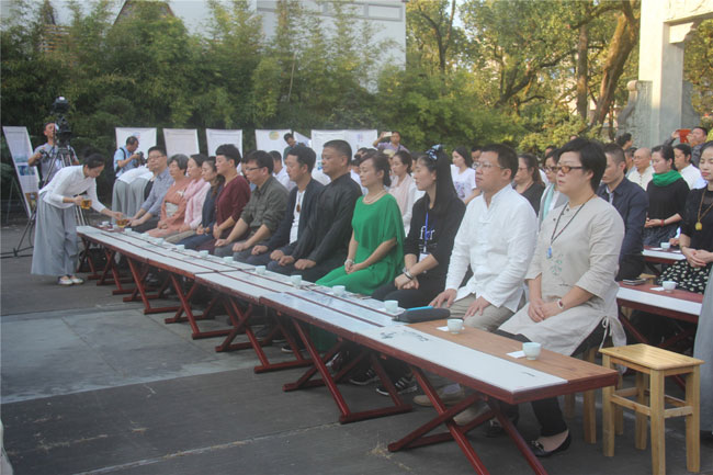 中國茶道專業(yè)委員會指定茶道教師、中國茶藝師評定標(biāo)準(zhǔn)定制者之一,和靜茶修學(xué)堂處選人,中華茶館聯(lián)盟監(jiān)事長、華茶靜會導(dǎo)師王瓊老師在御窯廠準(zhǔn)備了百人茶會表演。