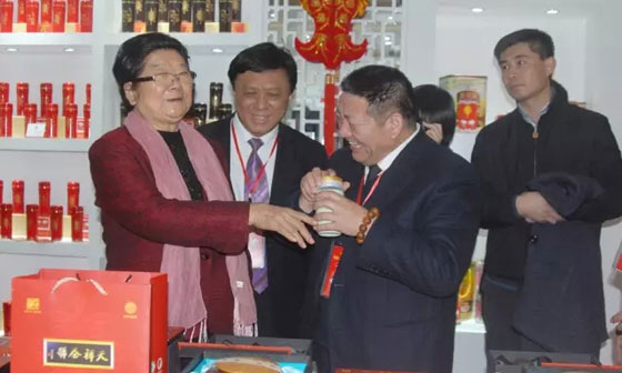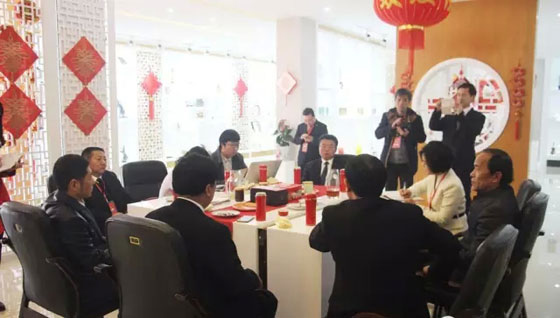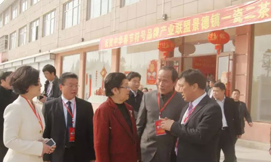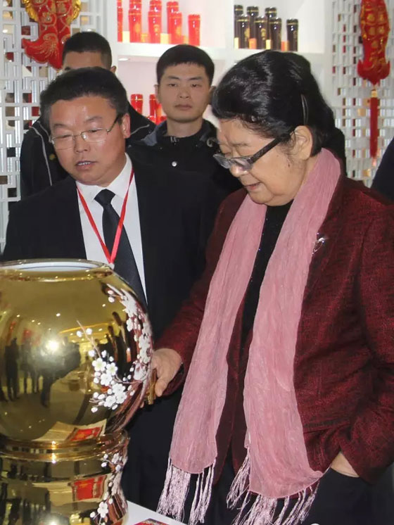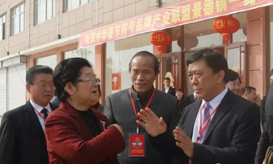中華春節(jié)符號品牌產業(yè)聯(lián)盟創(chuàng)始企業(yè):安華瓷業(yè)總經理、副館長李振華、天祥茶號法人代表、副館長吳宏昌、總經理江建鴻迎候名譽主席顧秀蓮考察。