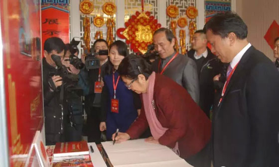 顧秀蓮為中華春節(jié)符號景德鎮(zhèn)市“一瓷二茶”主題館簽字留念。