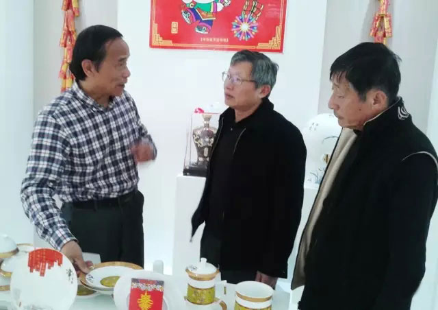 3月4日,著名書法大家、景德鎮(zhèn)書法家協(xié)會(huì)原主席王壽霖、中國(guó)陶瓷文化研究所陶瓷書法研究中心主任、市書法家協(xié)會(huì)主席郭立教授、景德鎮(zhèn)陶瓷學(xué)院材料科學(xué)與工程學(xué)院劉維良教授、著名設(shè)計(jì)師、陶藝家、書法家孟木根等應(yīng)邀到主題館,他們對(duì)主題館的建立和開(kāi)館表示祝賀,并對(duì)聯(lián)盟企業(yè)所開(kāi)發(fā)的中國(guó)年文化與景德鎮(zhèn)的陶瓷、茶葉相結(jié)合的產(chǎn)品表示贊賞,大家就進(jìn)一步把中國(guó)優(yōu)秀傳統(tǒng)文化融合到陶瓷設(shè)計(jì)與教育之中,進(jìn)行了廣泛和深入的交流。