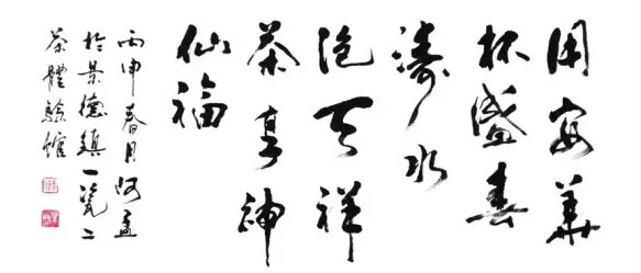 著名設(shè)計(jì)師、陶藝家、書法家孟木根題寫“用安華杯盛春濤水,泡天祥茶享神仙!