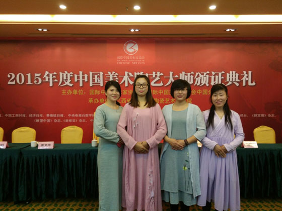 茶藝師在2015年度中國(guó)美術(shù)藝術(shù)大師頒獎(jiǎng)典禮合影