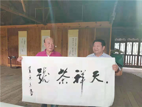 8月31日,曾創(chuàng)作《中國中國,鮮紅的太陽永不落》《莫愁啊莫愁》等歌詞的當代著名詞作家賀東久,為《山不轉(zhuǎn)水轉(zhuǎn)》《祝你平安》《永遠是朋友》《你好嗎?》等作曲的總政歌舞團國家一級作曲家、央視青歌賽評委劉青等來到浮梁縣天祥茶號有限公司參觀,在品鑒天祥古樹紅茶后,兩位大師均贊不絕口。賀東久欣然揮毫為天祥茶號題字。
